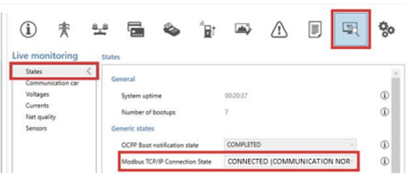 - Make sure the communication between the charging station and the SmartgridOne Controller is open.
