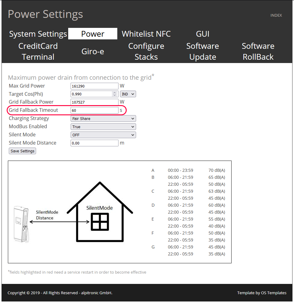 - "Grid Fallback Timeout" is the maximum time allowed between 2 commands from the SmartgridOne Controller. The default is 5 seconds, set this to 60 seconds by default. Afterward, click "Save Settings" again.