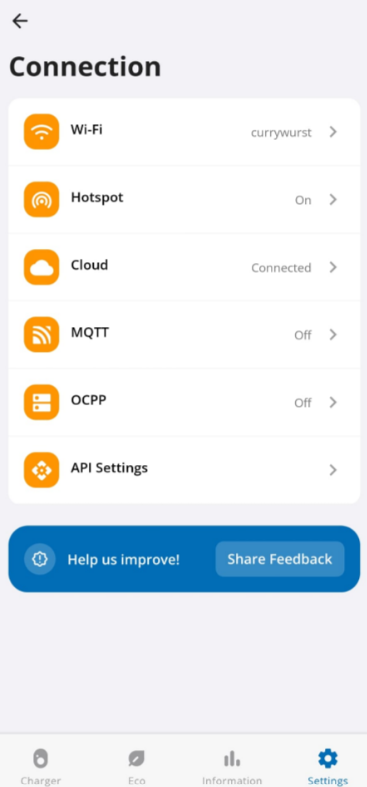In the go-e application, go to your device, then "Settings".