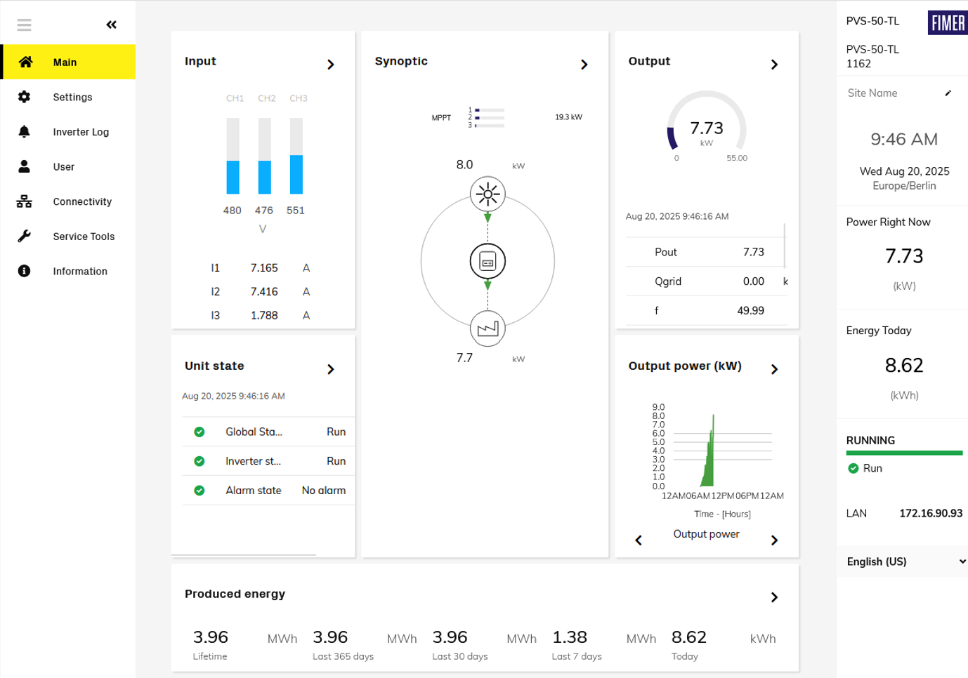 The second step is to find the Fimer ABB inverter's IP address and to open that address in a web browser. This will open the inverter's web interface: