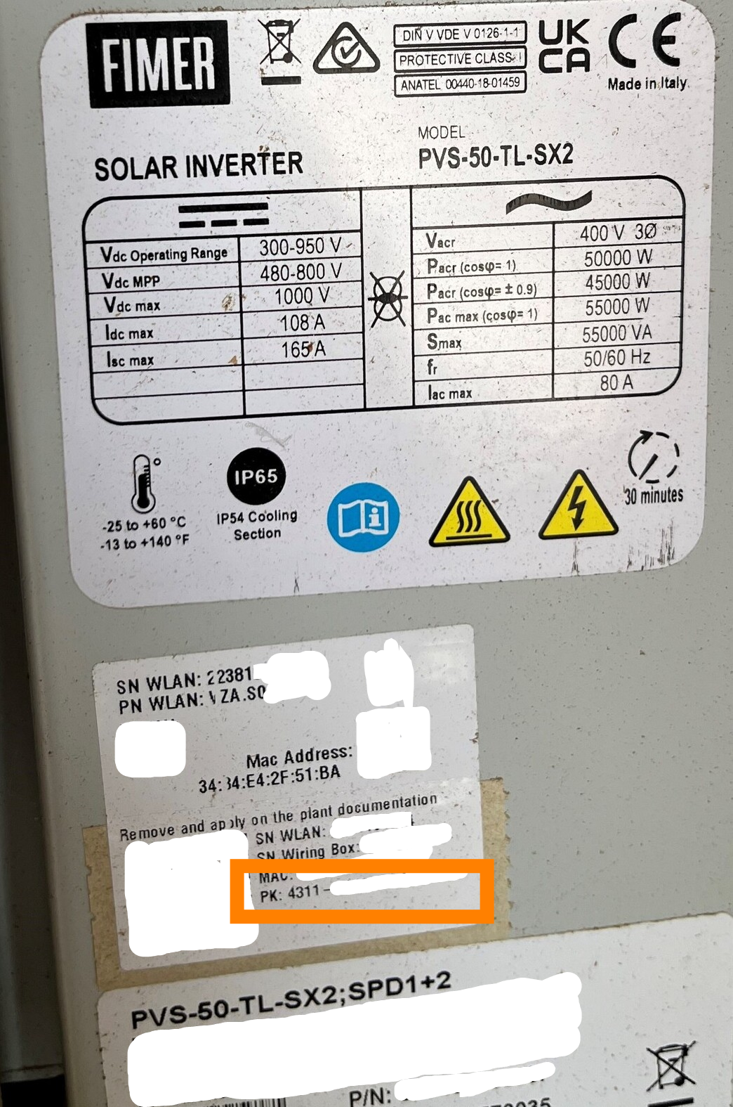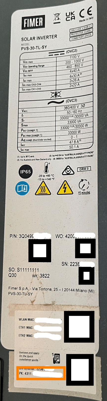 Choose the "Forgot password" option on the login page. Find the product key on the inverter's label and enter it in the field. The product key is shown on the inverter's label as "Product Key" or "PK": For example: