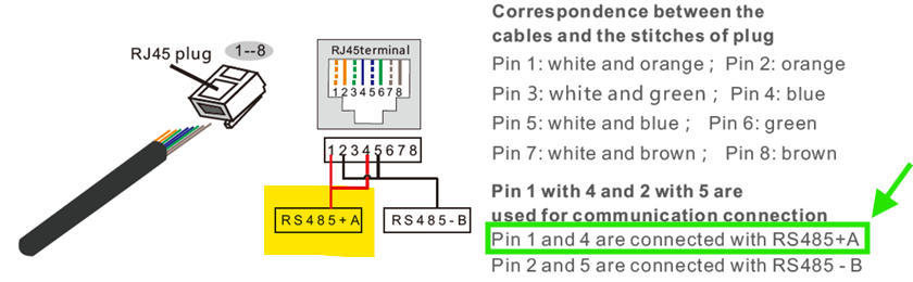 The port is an RJ45-port, used for the RS485 communication. A cable need to be prepared to connect the inverter to the inverter.