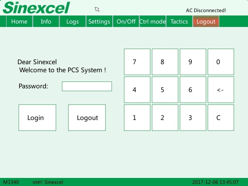 On the touchscreen of the inverter: