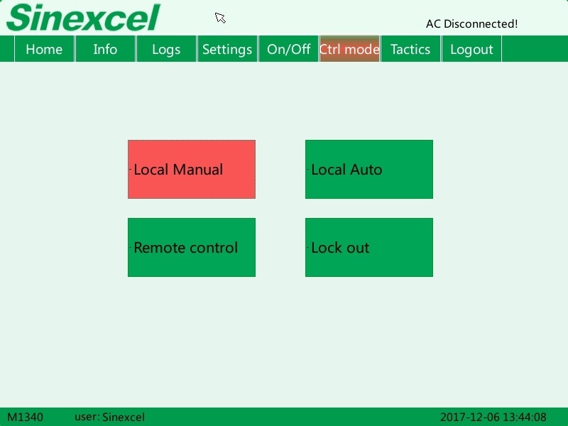 In case the mode is already on "Remote control", but the battery does not respond, put the mode first on "Local Manual" and then select again "Remote control" to reactivate the remote control function.
