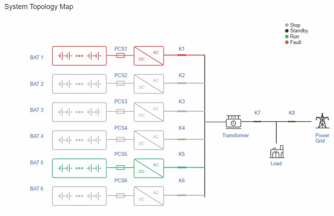 The system is powered up (see the power-on step for details) to ensure that the auxiliary power supply of the BESS is working properly (the 'power' indicator light on the door panel can be observed, and if the indicator light is on, it indicates that the auxiliary power supply is working properly). After waiting for about 1 minute: