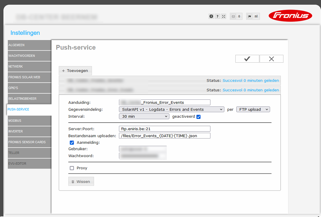 Via WiFi it is possible to configure the FTP push directly via the inverters. To achieve this, the following steps must be taken: