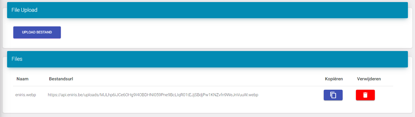 This page is to store certain documents or images. Once you press the Upload file button, you will get a popup where you can select files. This can be used to upload SVGs, images or other files you might want to use in widgets that support this.